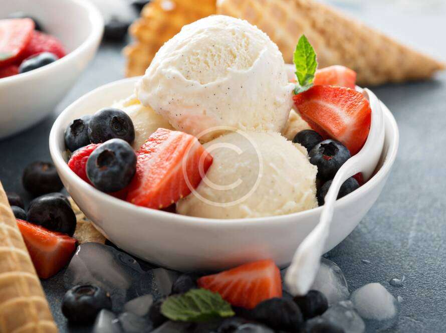 Fresh mint ice cream bowl with chocolate chips and lime juice